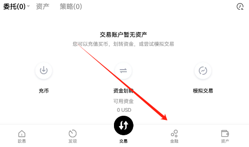 1、打开oe交易所以后,点击金融功能板块。这一步是进入货币选择的核心入口,金融区域集中了各类投资产品,包括安全货币选项。通过APP的直观界面设计,用户可以快速定位,无需复杂操作。