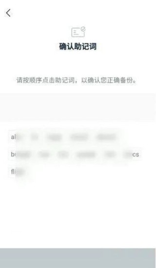 将显示的12个助记词按顺序工整地抄写在纸上保存好,然后点击下一步。系统会要求按顺序点击单词进行验证,完成后点击结束备份。