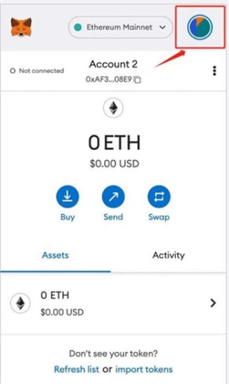 1、单击 Mask下拉菜单右上角的网站图标。首先,在您的浏览器中打开小狐狸钱包插件或应用,确保网络连接稳定。进入主界面后,定位到右上角的圆形图标,点击它会展开下拉菜单。这一步是找回账户的起点,帮助您进入账户管理选项。如果图标未显示,请检查浏览器设置或重新加载页面。