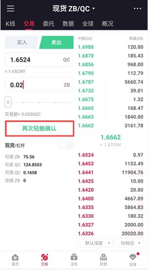 2、在交易页面左侧的卖出框内,选择您要卖出的数字货币种类。以QC交易区卖出ZB为例,输入您期望的卖出价格和卖出数量。价格输入应参考当前市场行情,数量需基于您的账户余额。确认无误后,点击"卖出ZB"按钮。系统会提示您再次轻触确认,以确保交易意图明确。委托提交成功后,平台将自动撮合买卖双方,等待成交通知。这个过程体现了现货交易的即时性,用户需保持网络稳定以实时监控状态。