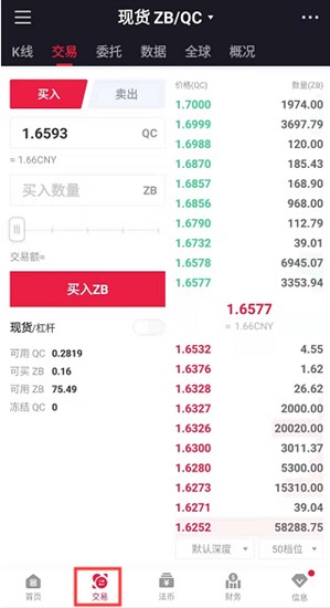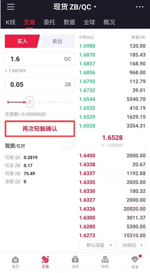 2、在左侧买入框内输入您希望购买的价格和数量,这里以QC交易区购买ZB为例。输入完成后,点击“买入ZB”按钮,系统会弹出确认窗口,轻触确认即可提交委托。委托提交后,系统会自动撮合买卖双方订单,这个过程可能需要短暂等待。撮合成功意味着交易完成,您的账户将更新相应资产。建议输入价格时参考市场实时行情,合理设置以避免延迟成交。