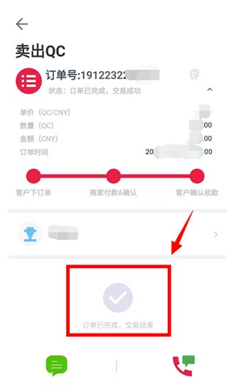 7、确认收款后,订单状态会更新为交易完成。整个过程结束,QC已成功卖出,资金转入您的账户。建议交易后检查账户余额,确保一切无误。