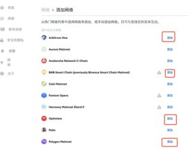 第二步:在添加网络页面,您会看到多条不同公链选项。选择适合USDT的网络,例如以太坊主网,因为USDT代币通常基于该网络运行。点击目标网络后,系统将显示网络详情,包括名称、链ID和符号。确认信息无误后,继续操作。这一步确保您连接到正确的区块链环境,便于后续添加代币。
