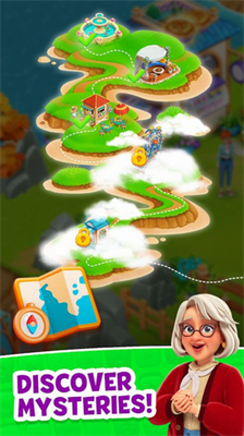 通过三消小游戏获取建材,解锁风车磨坊等特色生产建筑提升收益;